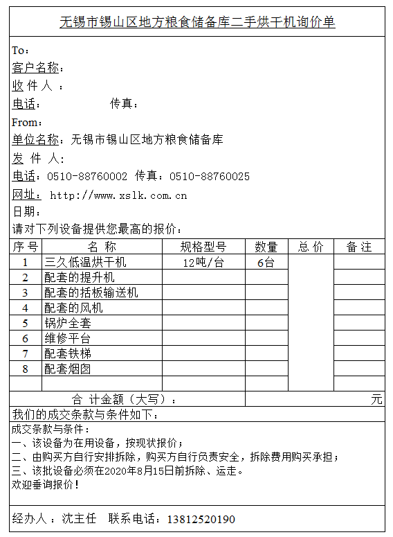 无锡市锡山区地方粮食储备库二手烘干机询价单